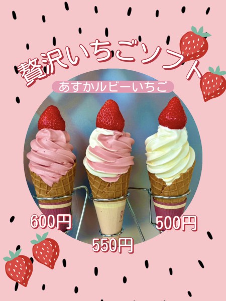 あすかルビーが丸ごと1個のった、「贅沢いちごソフト」今年も期間限定で販売します!
