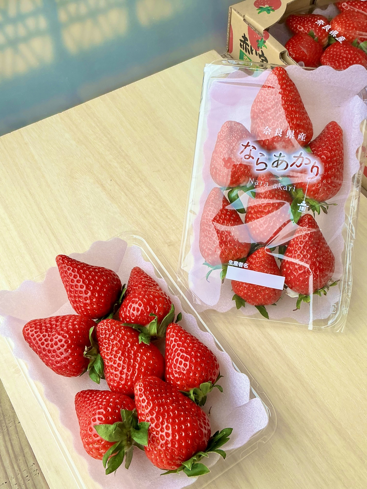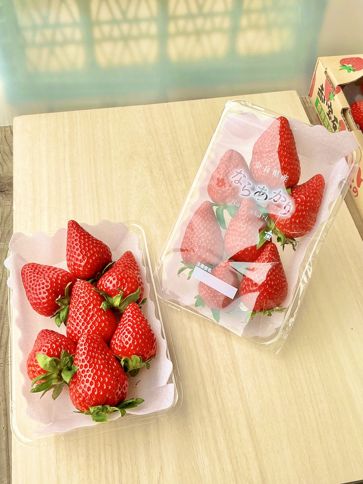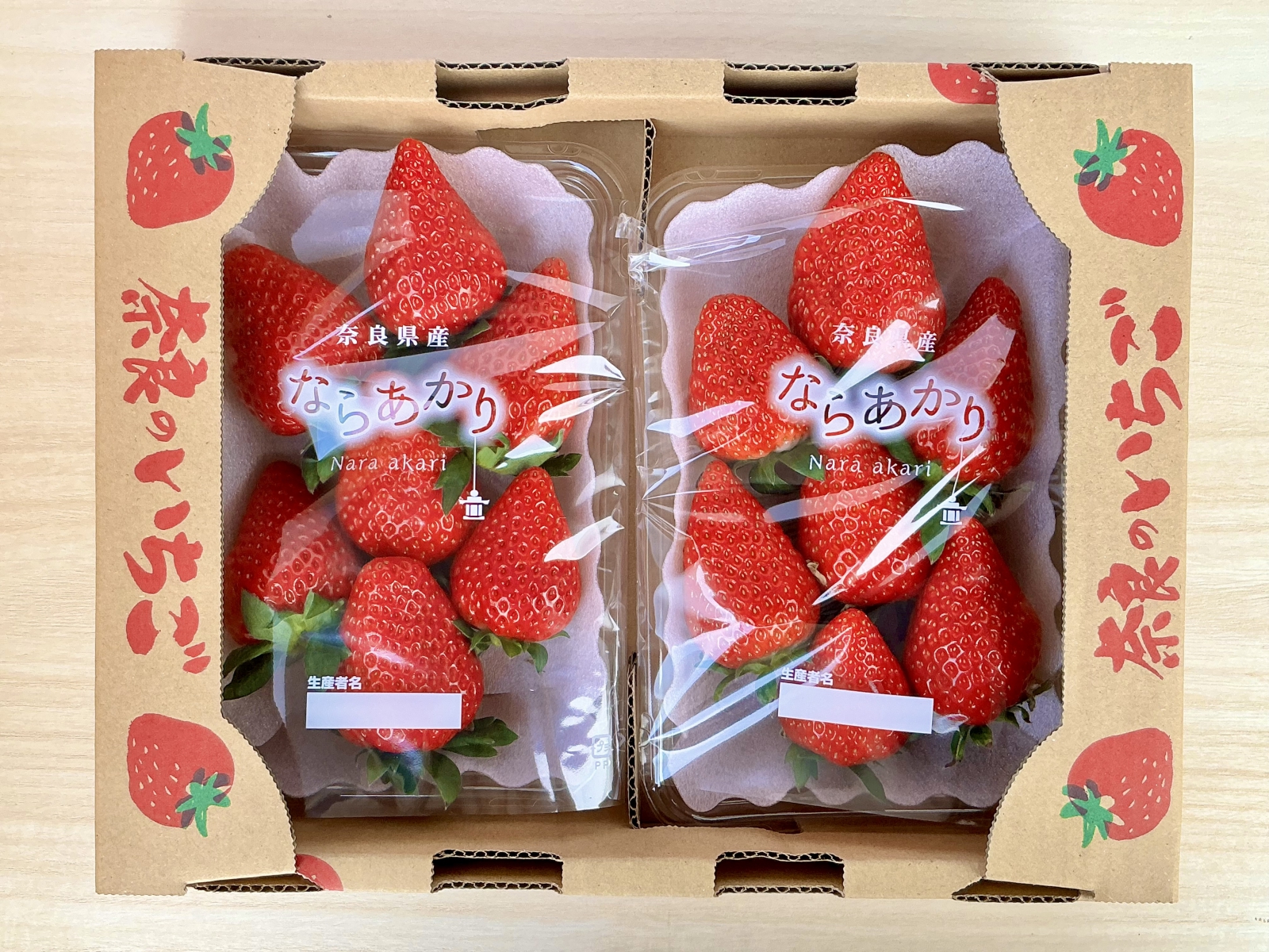 古都華ととちおとめなどを交配して誕生した、糖度が高めでほどよい酸味のある、すっきりとした甘さが特徴の明日香村自慢のいちごをご自宅までお届けします。もちろん採りたてです♪