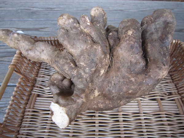 山芋の一種で、写真のように細長くいものです。山芋のなかで、最も粘りと旨味が濃いとされています。旬は11月中旬から1月頃にかけてです。