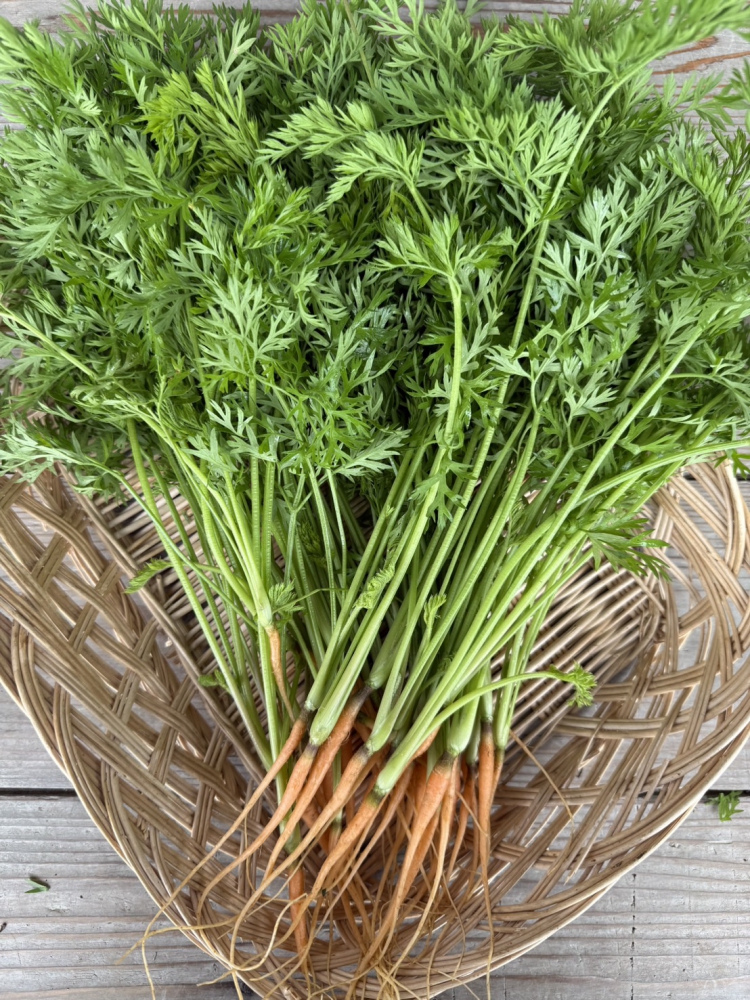 にんじんの間引き菜 店に出る時期 栄養価が高く、さまざまな料理に活用できる美味しい食材です。 胡麻和えや炒め物でどうぞ。 さっと湯がいて、適当な大きさに切って、酢・砂糖・味噌と和えて、最後にすりごまをかけると、甘酢味噌和えの出来上がり。 あすか夢販売所の商品一覧